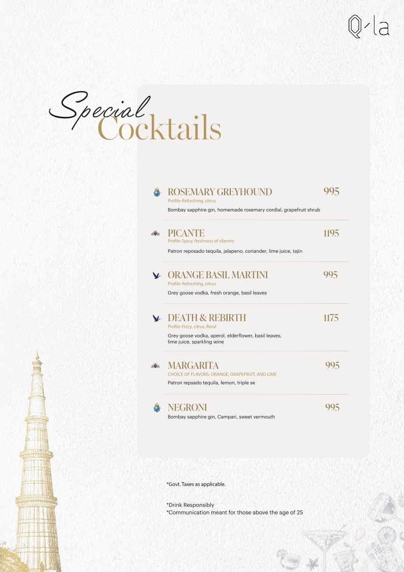 Welcome to Qla - New Delhi, a remarkable dining destination nestled beside the iconic Qutub Minar. This fine dining gem offers an elegant ambiance, perfect for celebrating special occasions. With an array of exquisite cocktails and a thoughtfully crafted menu, Qla delights the senses.